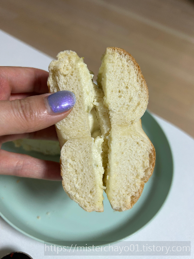 대파크림치즈는 워낙 유명한 조합이라 기대가 컸는데요. 역시 기대를 저버리지 않았습니다. 빵 자체도 쫀득쫀득하고 대파 향이 은은하게 퍼져서 좋았어요. 다만, 대파가 콕콕 박혀있는 비주얼은 아니었습니다. 그래도 풀무원 제품이라 그런지 전체적인 맛은 평타 이상!